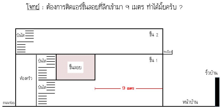 ต้องการติดแอร์ในห้องชั้นลอย ที่ลึกจากหน้าบ้าน 9 เมตรครับ ด้านหลังบ้านติดถนนซอย