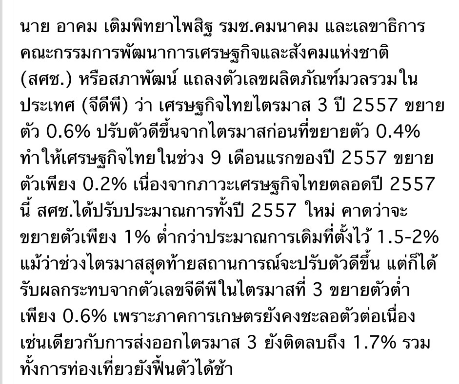 เครดืต สภาพัฒน์ ข่าสดออนไลน์ 18 พฤศจิกายน 2557