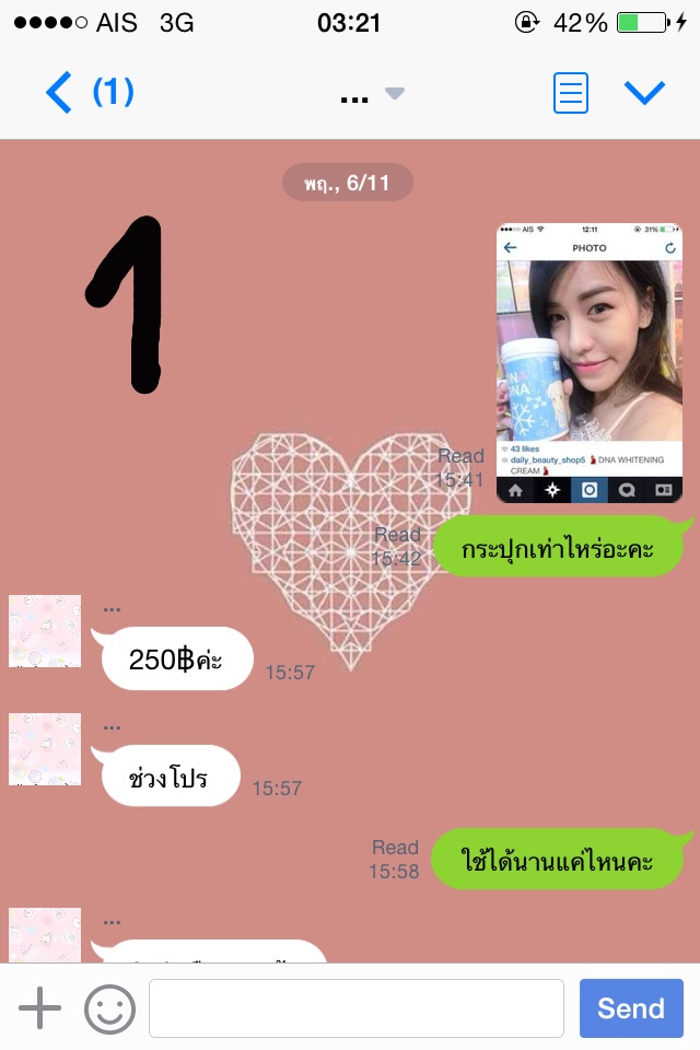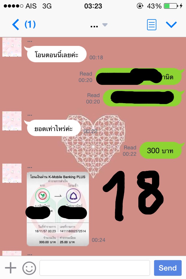 เหตุการณ์เกิดขึ้นเมื่อวันที่ 10 พ.ย. 57 ค่ะ ก่อนหน้านั้นเราได้สั่งครีมทาตัวชนิดหนึ่งค่ะ เราก็แอดไลน์คุยกะแม่ค้าและตกลงโอนเงินเรียบร้อยค่ะ