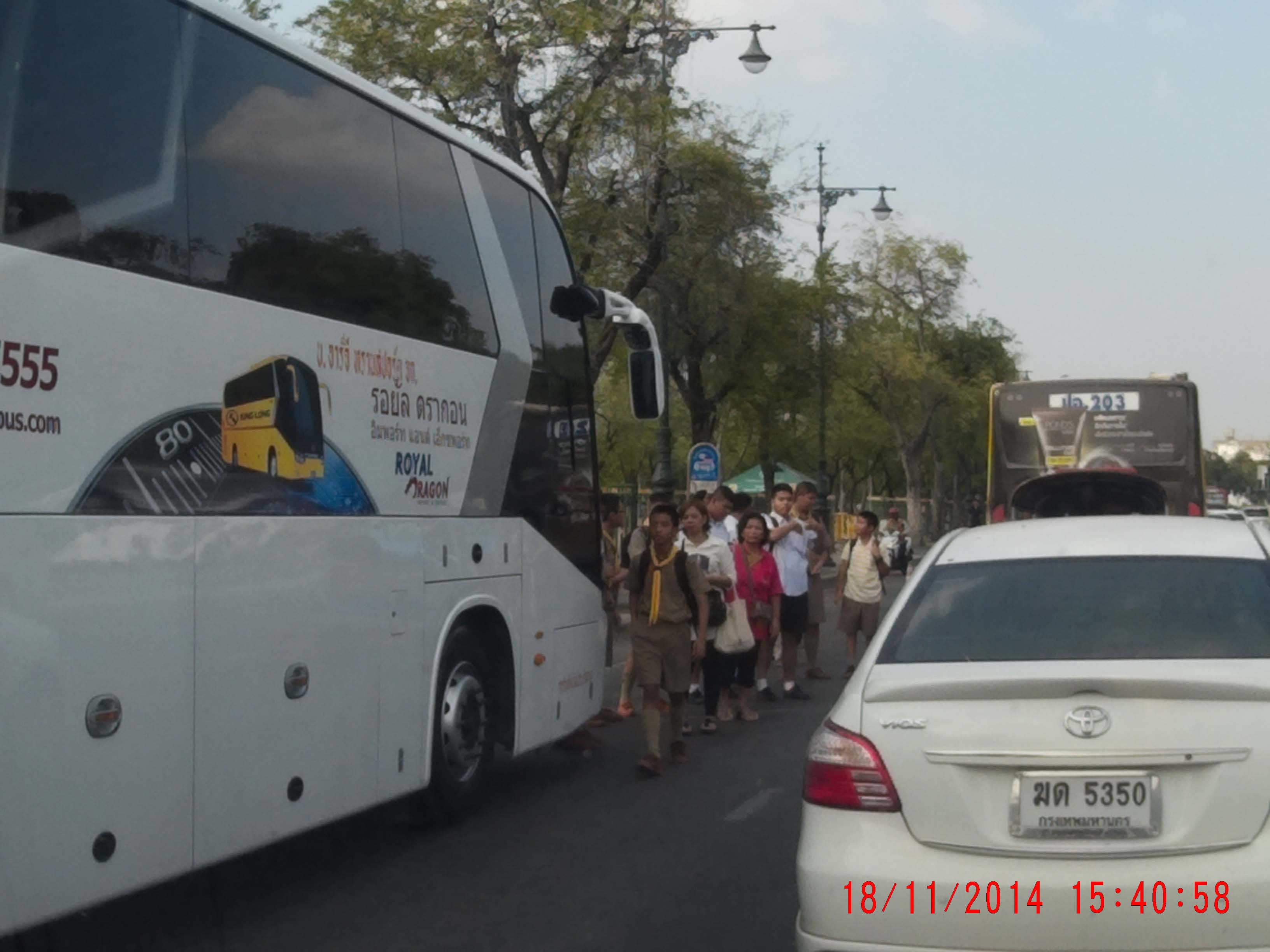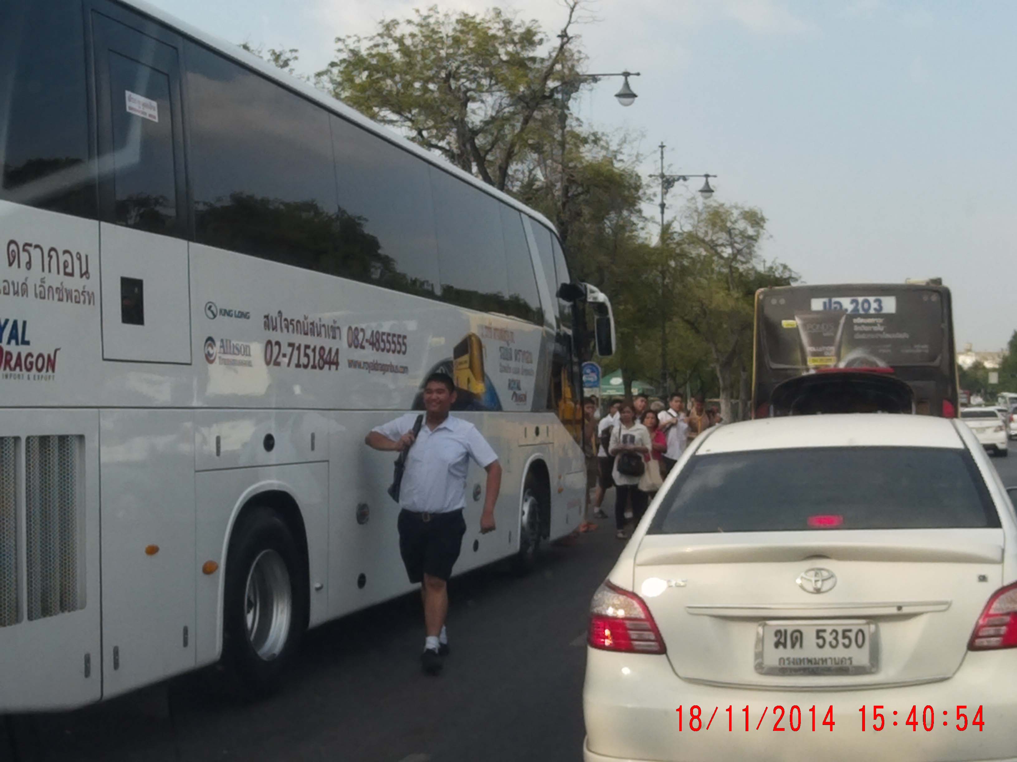 รถทัวร์นักท่องเที่ยว เส้นใหญ่ จอดแถวป้ายรถเมล์สนามหลวง จนคนต้องเดินมาเรียกรถกันกลางถนน!