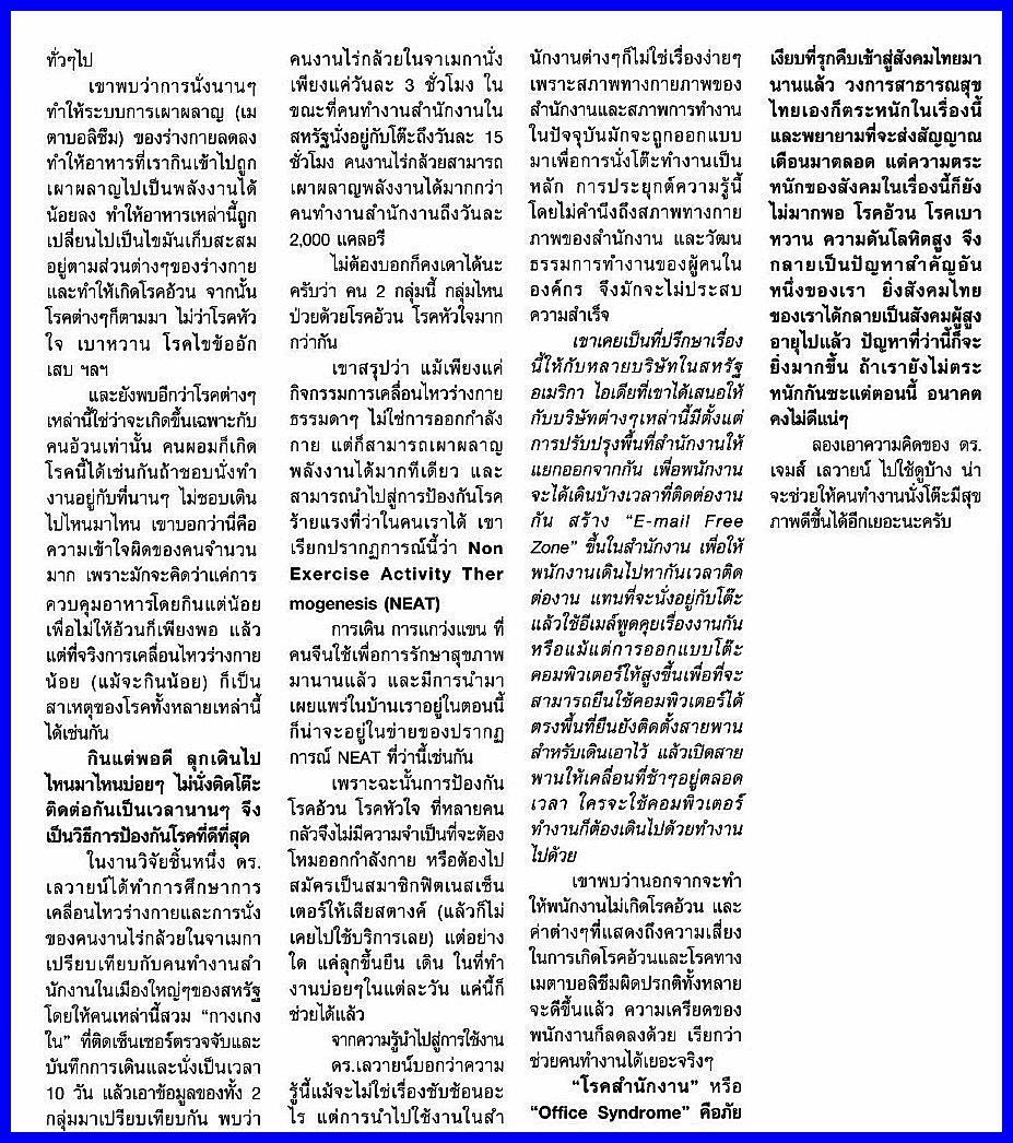 โรคสำนักงานภัยเงียบสู่สังคมไทย