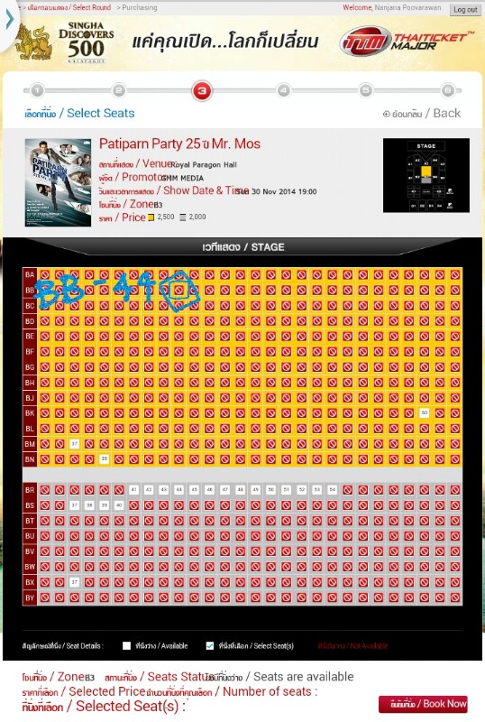 โซน B3 เลขที่นั่ง BB-44