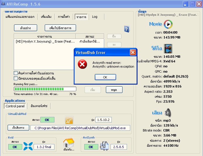 เราทำซับอยู่ๆ ก็ขึ้นว่า VirtualDub Error อ่าาา~ ใครรู้ช่วยหน่อย