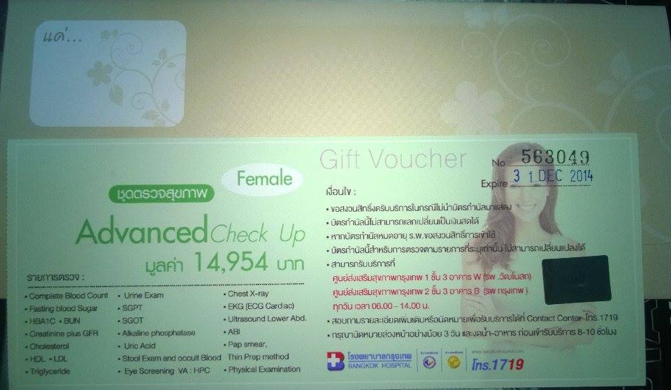 บัตรตรวจสุขภาพ รพ.กรุงเทพ Advanced Check Up