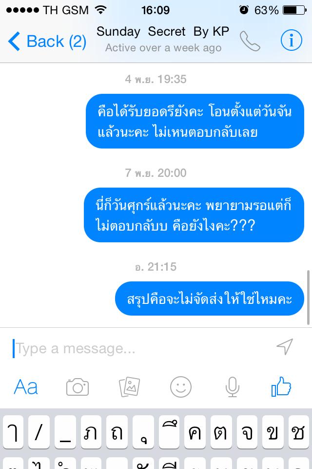 ตอนสั่งของ 2 พ.ย. ทางร้านตอบกับในวันนั้น พอโอนเงินและแจ้งโอน 3 พ.ย. แต่ตอบกลับบบ.....