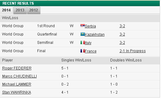 ดูจากตารางผลการแข่งขัน Davis Cup ปีนี้ เฮียเฟดนำชัยมาให้ทีมสวิสโดยชนะถึง 5 นัดรวด