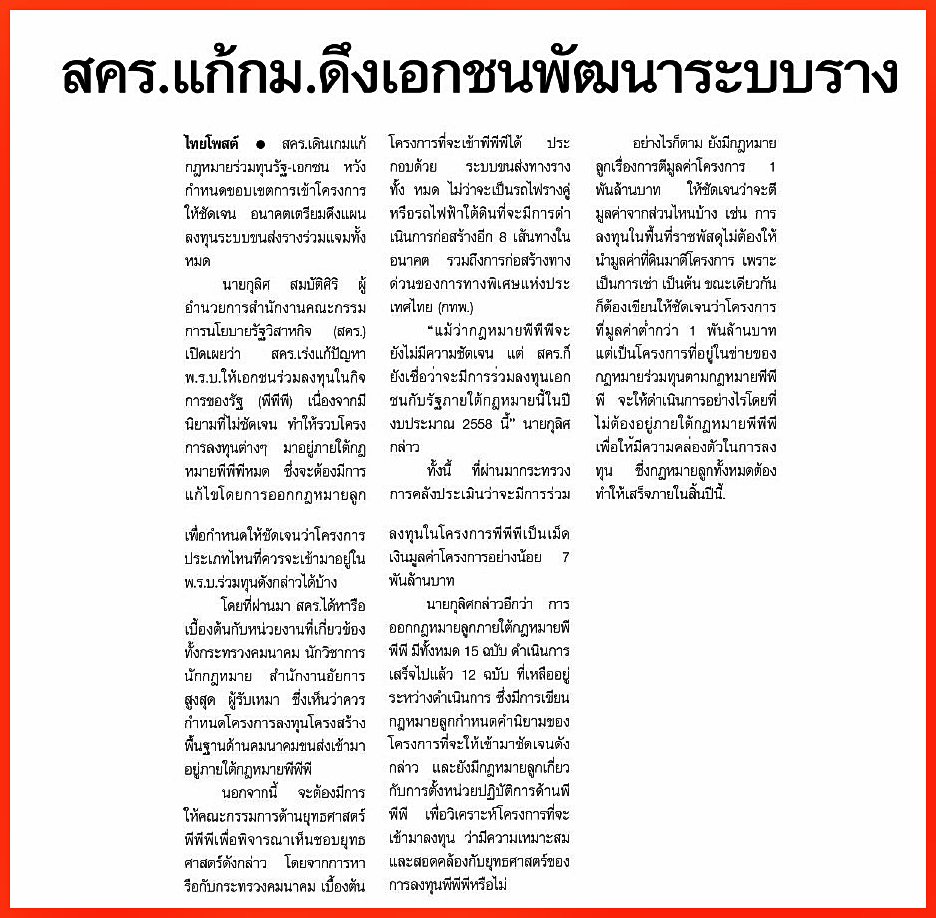 สคร.แก้กม.ดึงเอกชนพัฒนาระบบราง