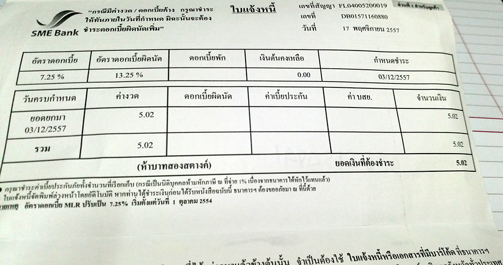 ครบสามเดือน ยอดหนี้คุณจะเพิ่มเป็นเจ็ดร้อยกว่า ๆ จากเงินแค่ห้าบาทที่ไม่ยอมไปจ่าย
