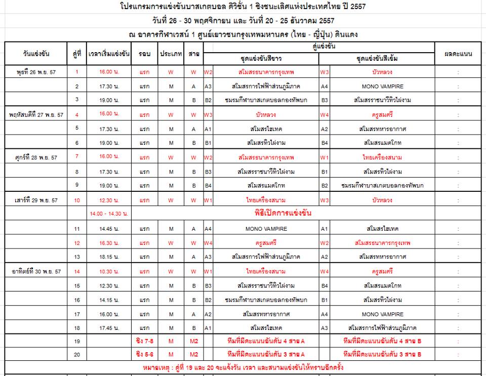 โปรแกรมบาสเกตบอล ดิวิชั่น 1 ชิงชนะเลิศแห่งประเทศไทย ปี 2557