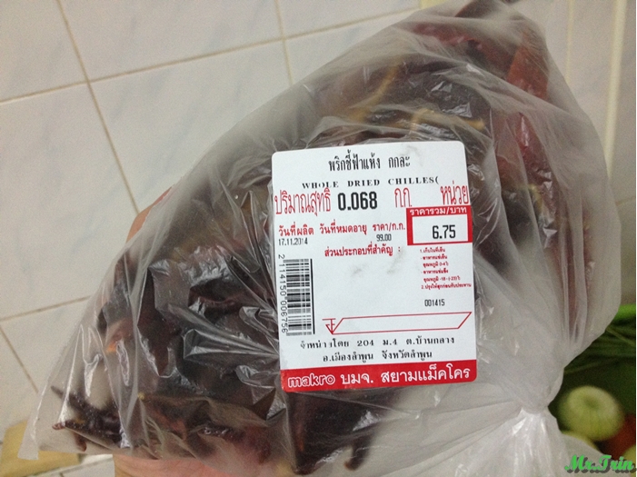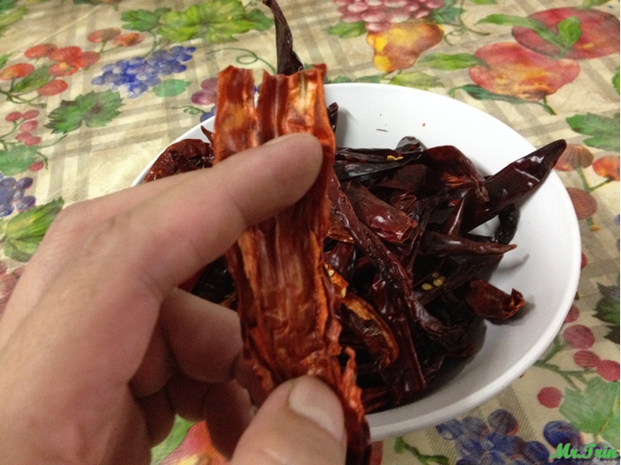 นำพริกชี้ฟ้าแห้งมาแกะเมล็ดออกให้หมด ตัวเมล็ดเก็บไว้ทำเครื่องแกงอย่างอื่นได้อีกครับ