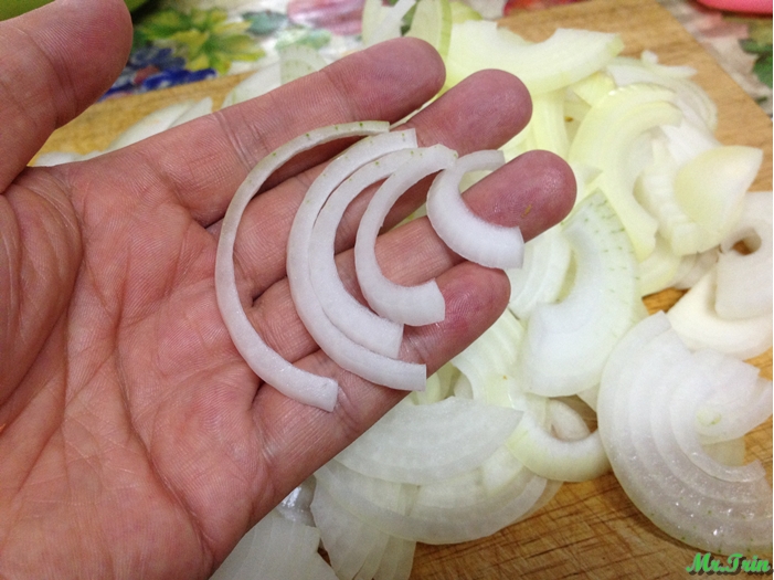 ซอยหัวหอมตามขวางแล้วคลี่มันออกจากกัน