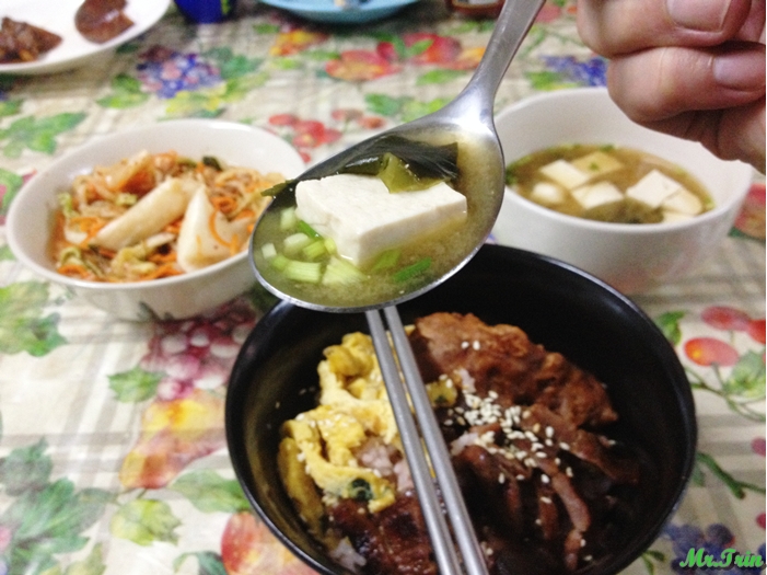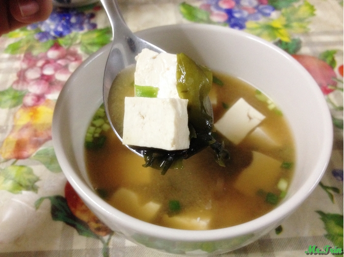 น้ำ 1 ลิตร ต้มให้เดือด เติมซุปดาชิ 2 ทัพพี คิคูแมน 3 ช้อนโต๊ะ รอประมาณ 5 นาที แล้วใส่เต้าหู้หั่นลงไปต้มจนสุก ( 3 นาที) ปิดเตา