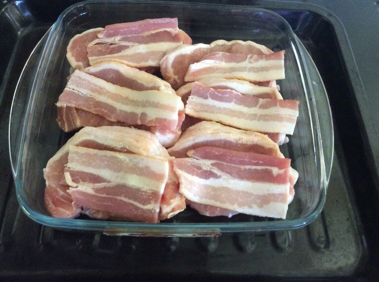 ไม่ปรุง เบค่อนเค็มอยู่แล้ว แปะบนหมูนิดหน่อยแล้วเอาเข้าเตาอบ