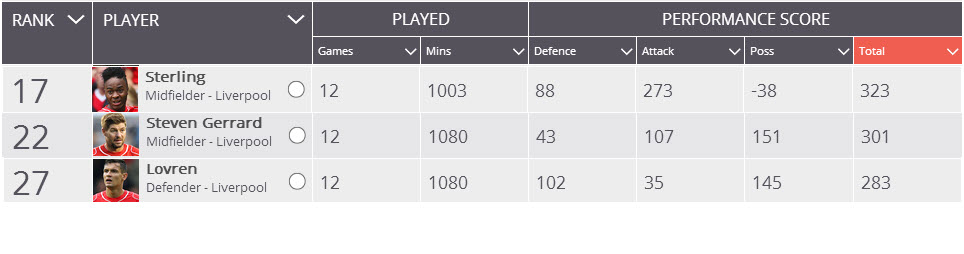 สถิติผู้เล่นยอดเยี่ยมในลีก