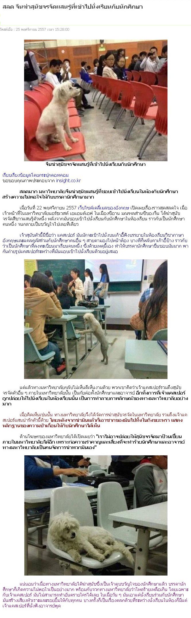 THIS IS CHINA!!! เฉียบ!!! สุนัขจรจัดแสนรู้ ที่เข้าไปนั่งเรียนกับนักศึกษา ในจีน ถูกฆ่าตายแล้ว!!!