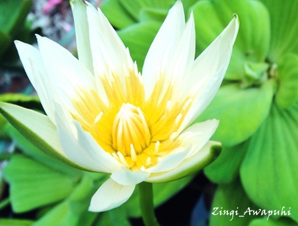 บัวขาวครับ สีขาวบริสุทธิ์ตัดกับเกสรเหลืองอร่าม มาพร้อมกลิ่นหอมหวานชวนเย้ายวนใจให้ดอมดมเป็นยิ่งนัก