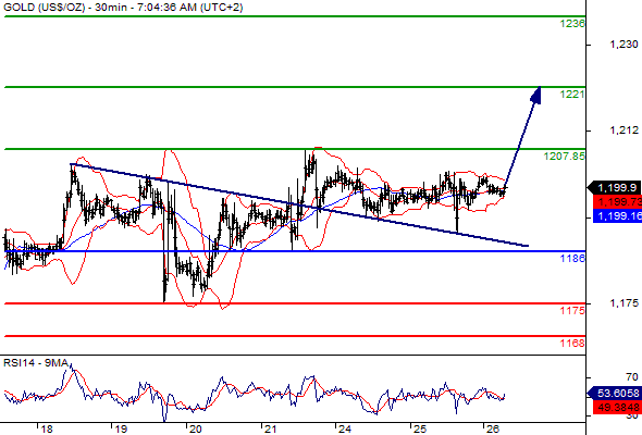 Our preference: Long positions above 1186 with targets @ 1207.85 & 1221 in extension.