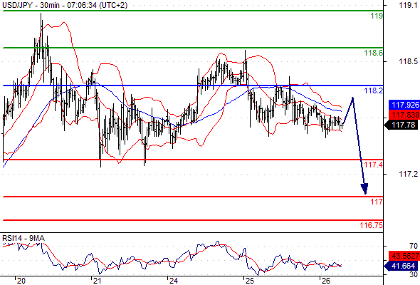 Our preference: Short positions below 118.2 with targets @ 117.4 & 117 in extension.