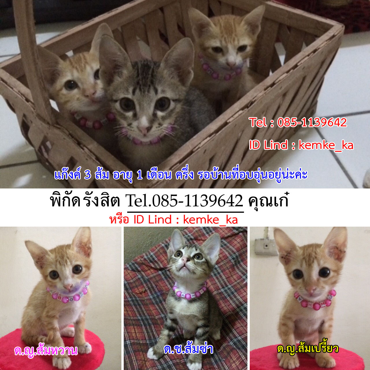 แก็งค์ส้มน้อยอายุ 1 เดือนครึ่ง จำนวน 3 ตัว ขอบ้านใหม่ด้วยค่ะ พิกัดรังสิต โทร. 085-1139642