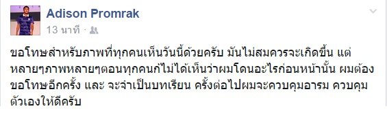 คำขอโทษจากเจ้าเก่ง อดิศร พรมรักษ์