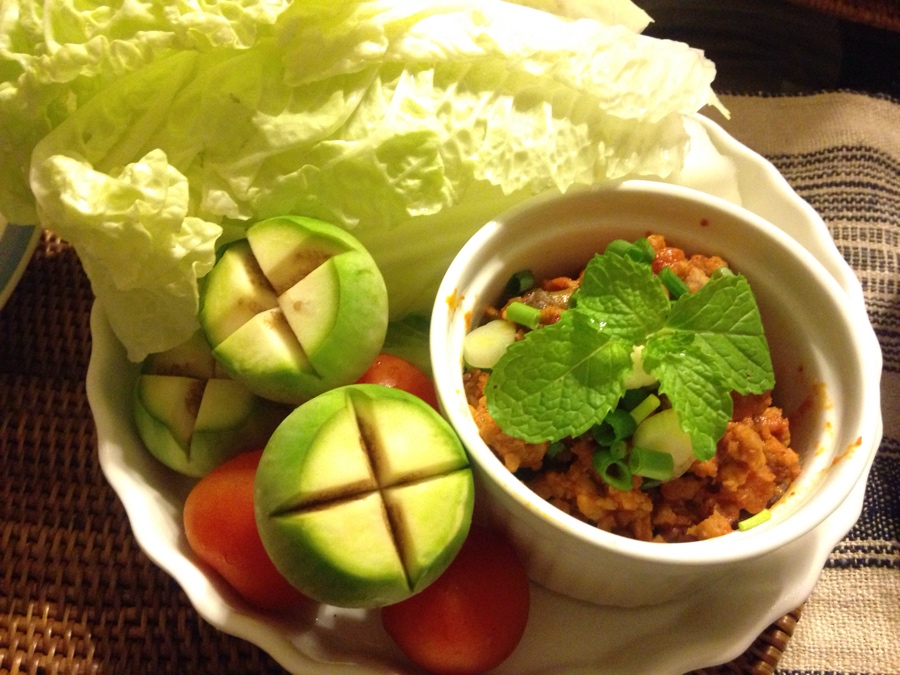 น้ำพริกอ่องทานกับผักสด อาจจะเพิ่มไข่ต้มได้ถ้ากลัวไม่อิ่มค่ะ