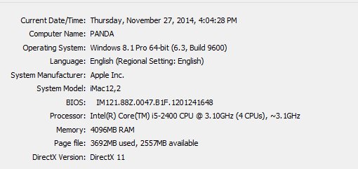 Intel core i5 3230m 4.00 GB (3.87 GB usable) 64 bit การ์ดจอเป็นการ์ดจอแยกครับ -AMD radeon HD 8570m -lntel HD graphics 4000 เป็นโน็ตบุ้คน่ะครับ