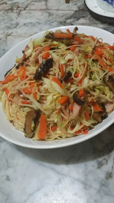 ผัดหมี่สั่งที่ขาดไม่ได้ ใส่แฮมกับเห็ดหอม