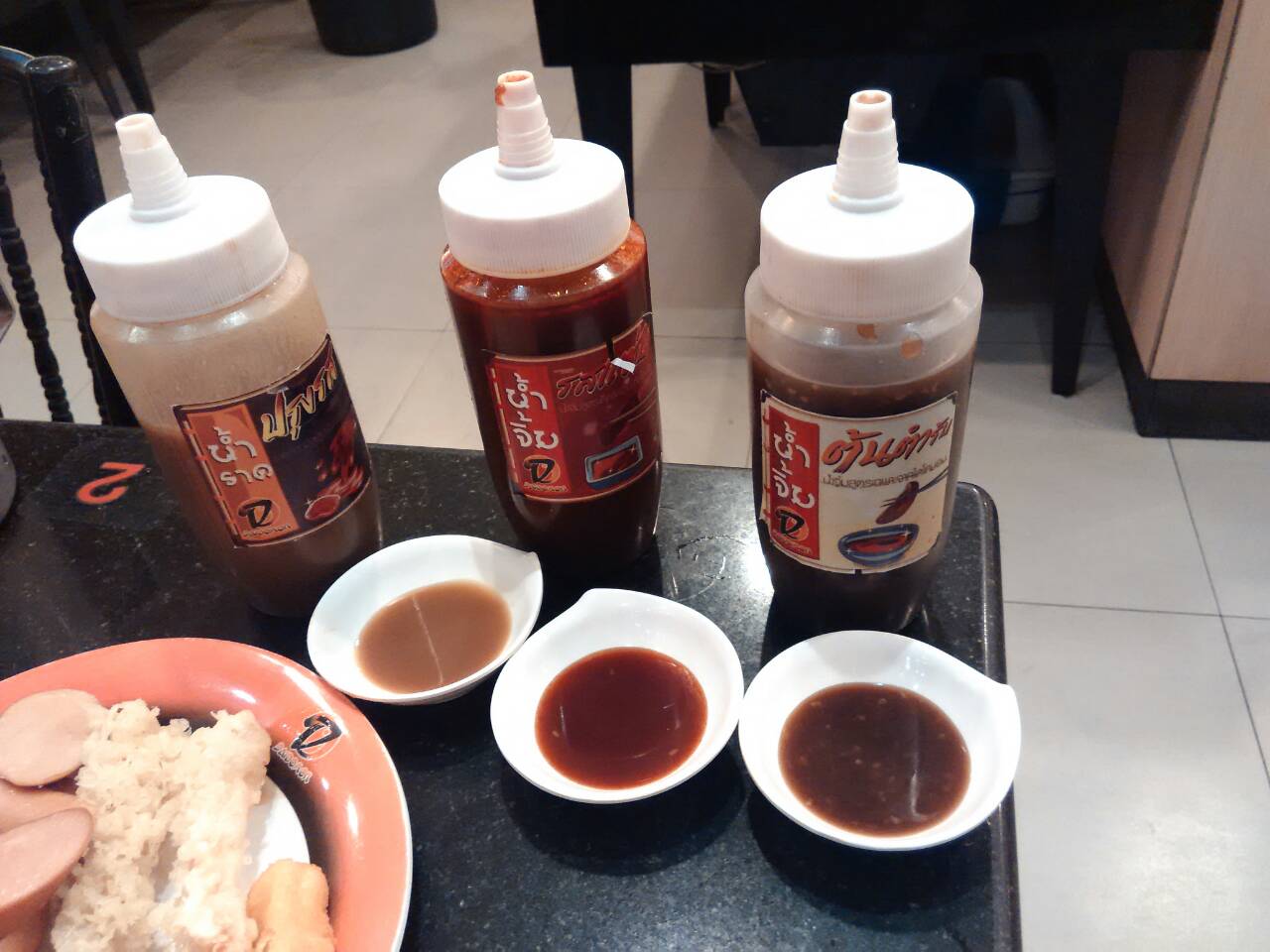 แต่ที่ชอบคือ น้ำจิ้ม มีหลายอย่างให้จิ้มเล่นเปลี่ยนรสชาติไปเรื่อยๆ ที่สำคัญมันอร่อยทุกรสอีกแน่ะ