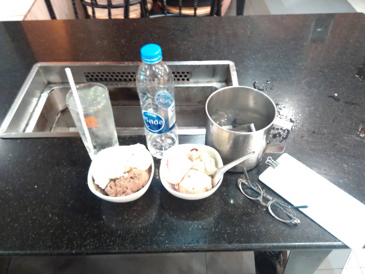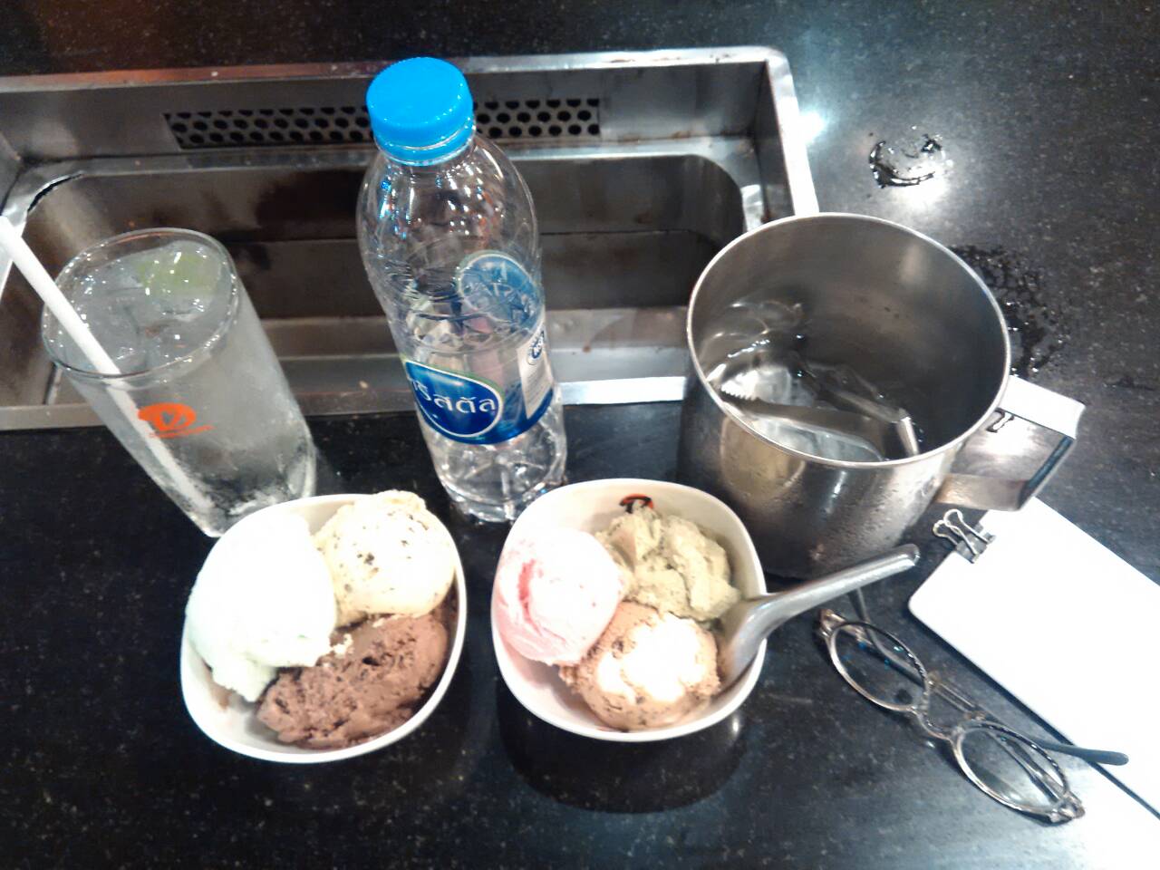 แต่เรื่องความสะอาดนี่อาจจะต้องเอาใจใส่มากซักหน่อย อย่างวันนี้ก็เจอแผ่นพลาสติดเล็กๆในถังน้ำแข็ง เผอิญเห็นตอนจบแล้ว ก็ช่างหัวมัน อาจเป็นพวกถุงใส่น้ำแข็งที่มันขาดตอนลงน้ำแข็ง(คิดในแง่ดี) แต่มันก็มีรอยเปื้อนๆให้คิดมากเหมือนกัน ก็รีบออกให้จบๆกันไป แต่พนักงานก็อัธยาศัยดีนะ