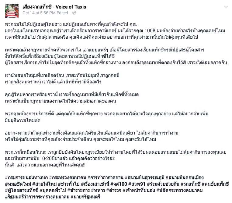 พอดีผมไปเจอเพจ เพจนึงเข้า นี้เป็นข้อแก้ตัวของพี่แท็กซี่ ที่เป็นแอดมินเพจครับ