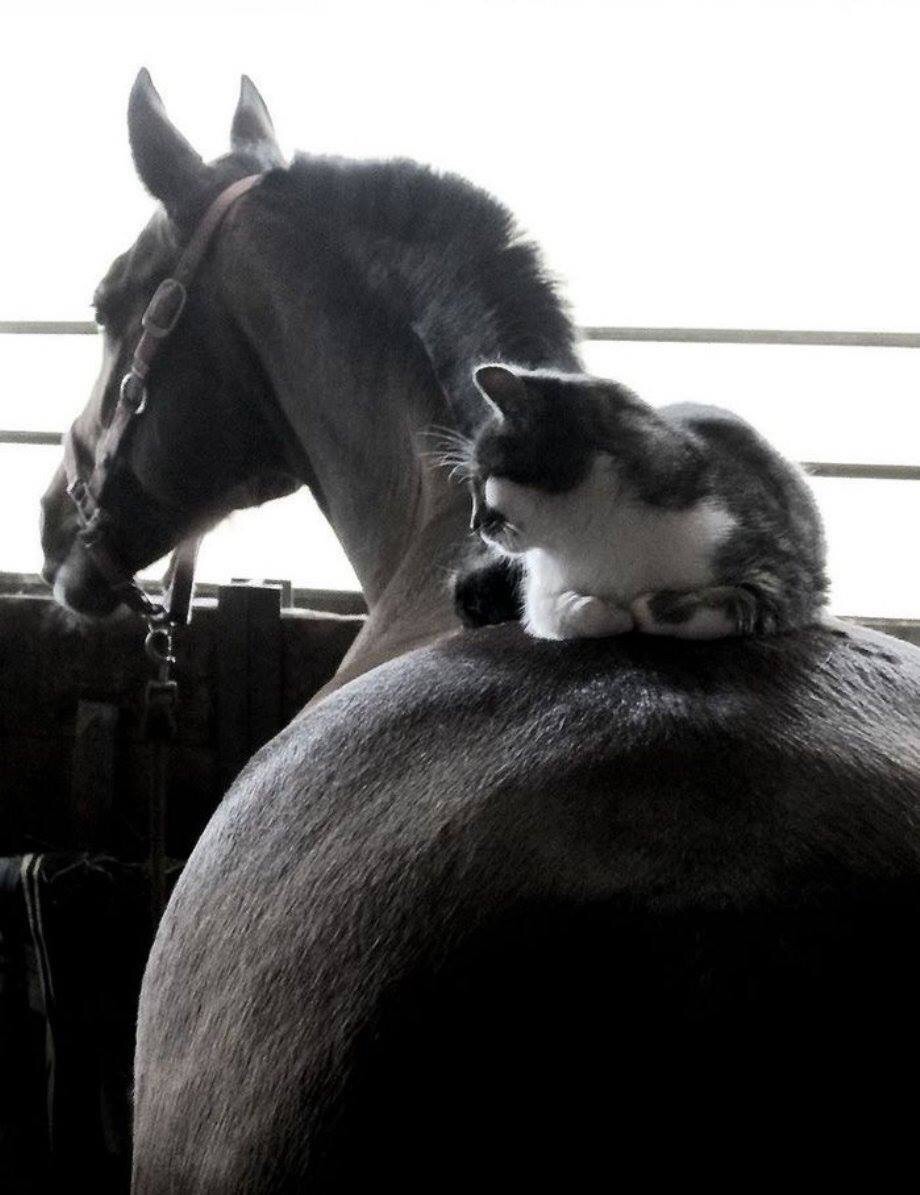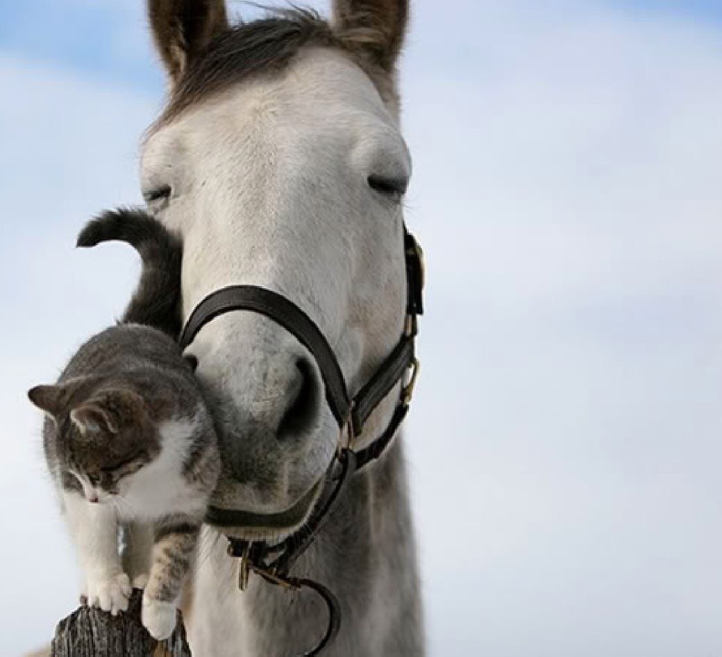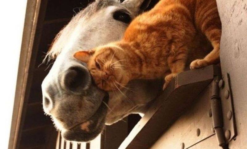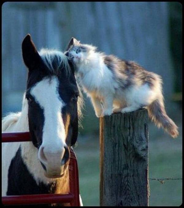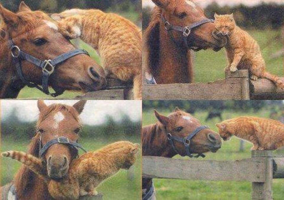 ภาพแมวกับม้าเป็นเพื่อนกัน