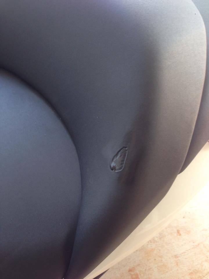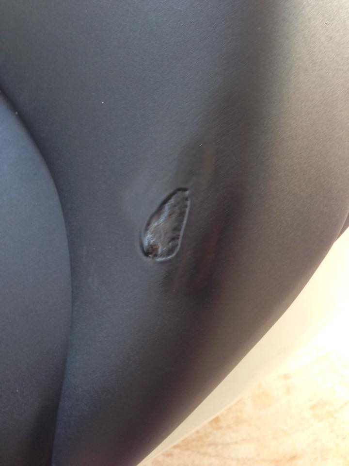 ใช่ครับ เบาะรถผมไหม้ เป็นรอย (โชคดีที่ไม่ถึงเนื้อฟองน้ำ)
