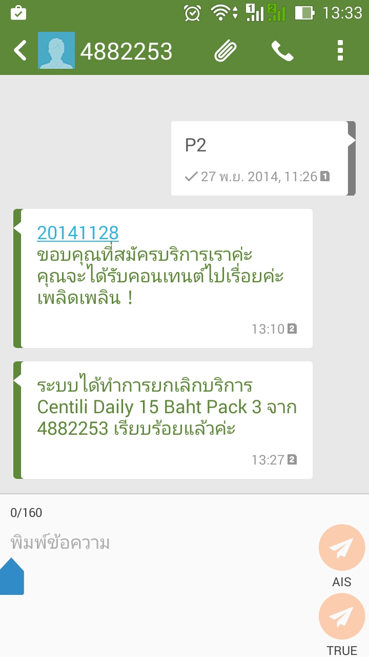 เบอร์แรก AIS ไว้โทร อีกช่องของ True เป็นโปรเน็ท ซึ่งเงินมันไม่มีทางจะลดไปได้