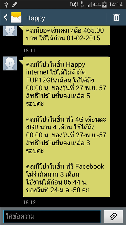 3. แพคเกจหมด น่าจะมีSMSแจ้งเตือนหน่อยนะครับ จากข้อ1.พอเข้าใจผิดว่ายังไม่หมด ผมเล่นต่อโดนหักจนเหลือ0บาทเลย