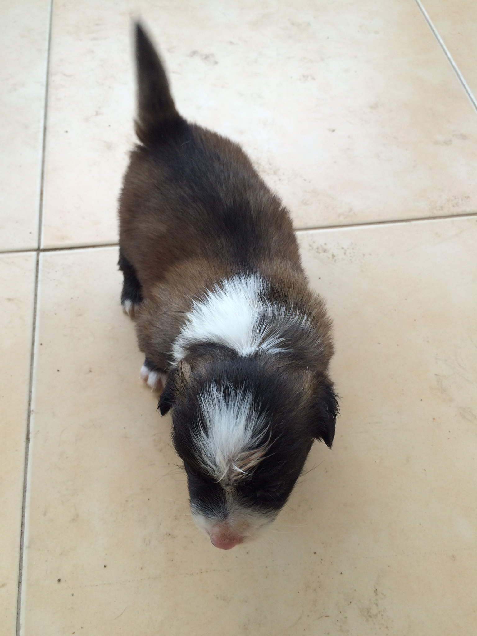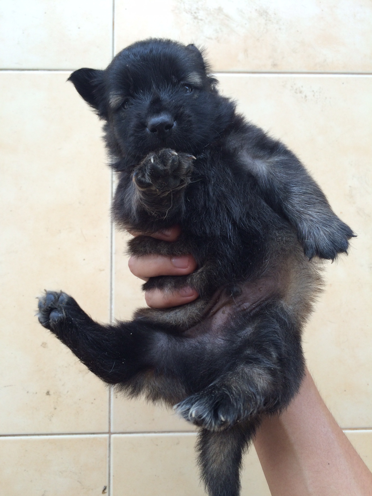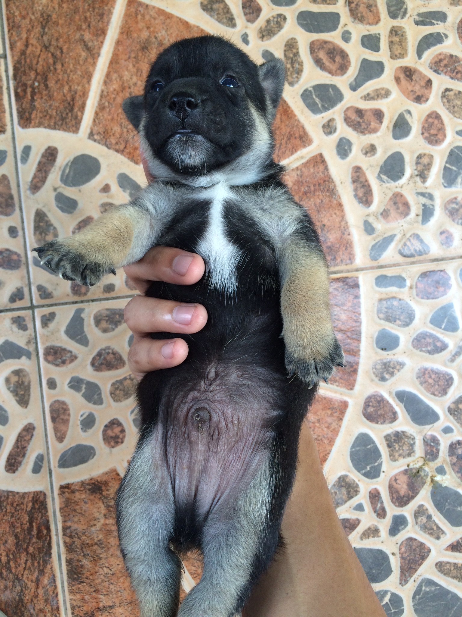 อายุตอนนี้ประมาณ 1 เดือนครับ ลืมตาแล้ว หูแตกแล้ว แต่ยังไม่รู้ว่าตัวไหนหูตั้งหรือหูตกนะครับ