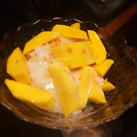 3. พอพนักงานเห็นว่าสั่งเก็บเงินแล้ว ก็รีบเข้ามาเก็บโต๊ะและแจ้งว่าทางร้านมี Complementary เป็นข้าวเหนียวมะม่วงให้ค่ะ