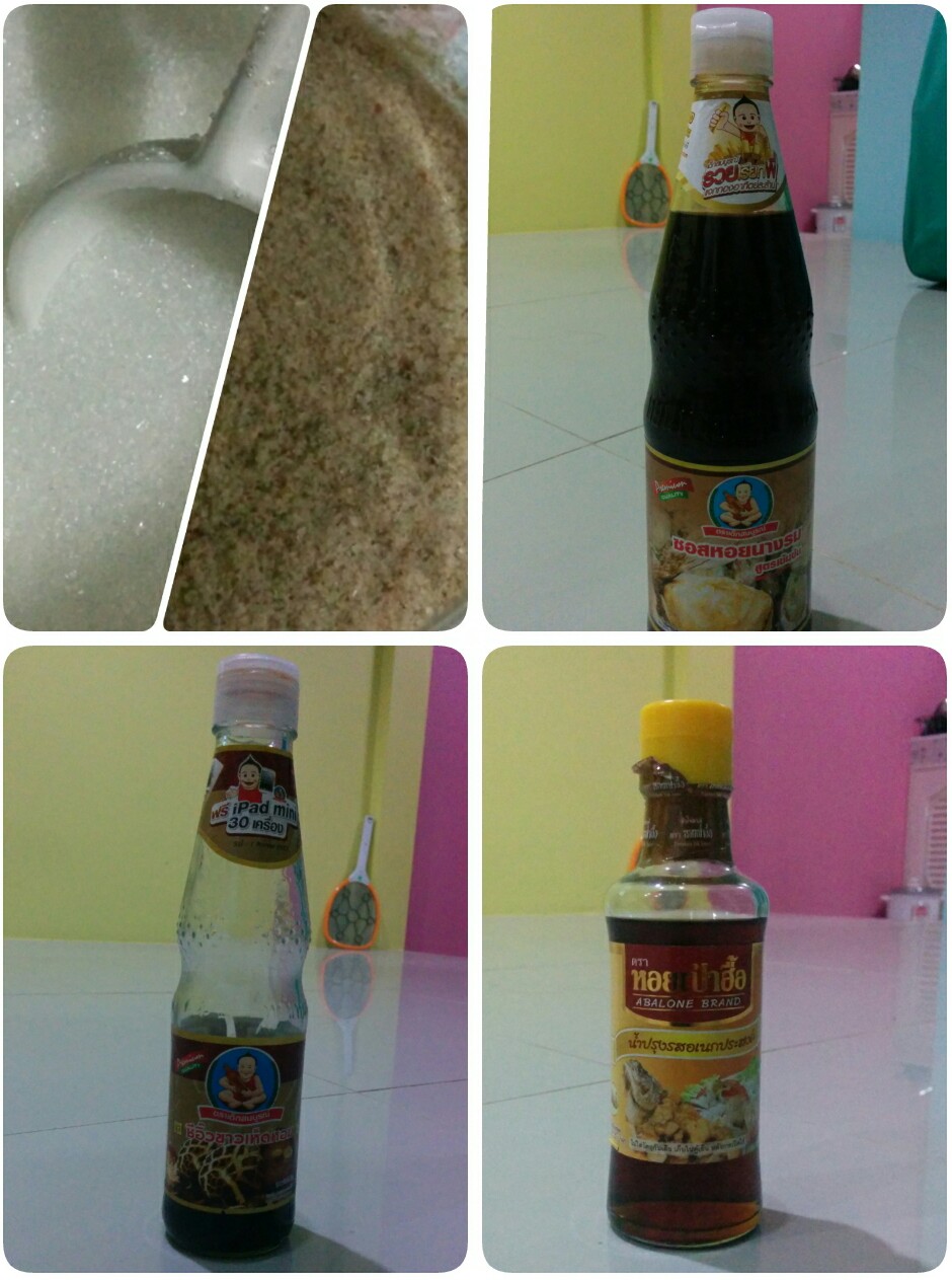 ซอสหอยนางรม น้ำปลา ซีอิ้วขาว น้ำตาลทราย รสดี