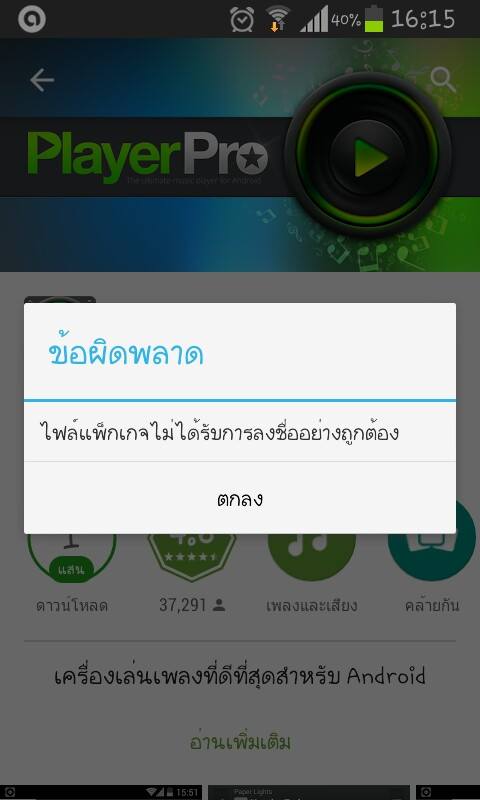 พอดีมีอัพเดทของแอปplayerpro แอปนี้ผมเสียตังค์ซื้อมาแล้วนะครับ วันนี้มันมีขึ้นว่าให้อัพเดท ผมลองอัพเดทดู มันขึ้นว่า "ไฟล์แพคเกจไม่ได้รับการลงชื่ออย่างถูกต้อง" ลบแล้วลงใหม่ก็อาการเดิม วอนผู้รู้ช่วยทีคับ