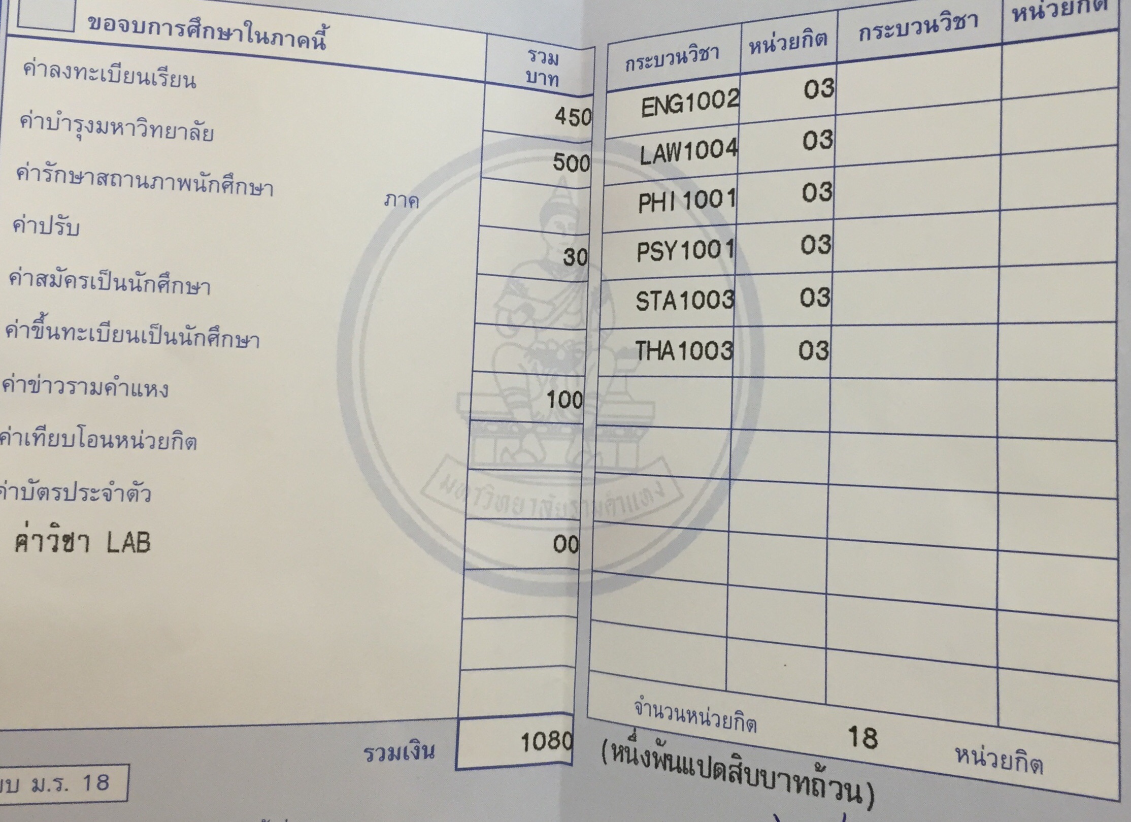 ได้ใบเสร็จมาถือว่าเรียบร้อยครับ เขาจะจองที่นั่งสอบให้เมื่อถึงวันสอบ ส่วนเวลาเรียนให้เข้าไปหาที่ ตารางเรียน มร.30 ครับ
