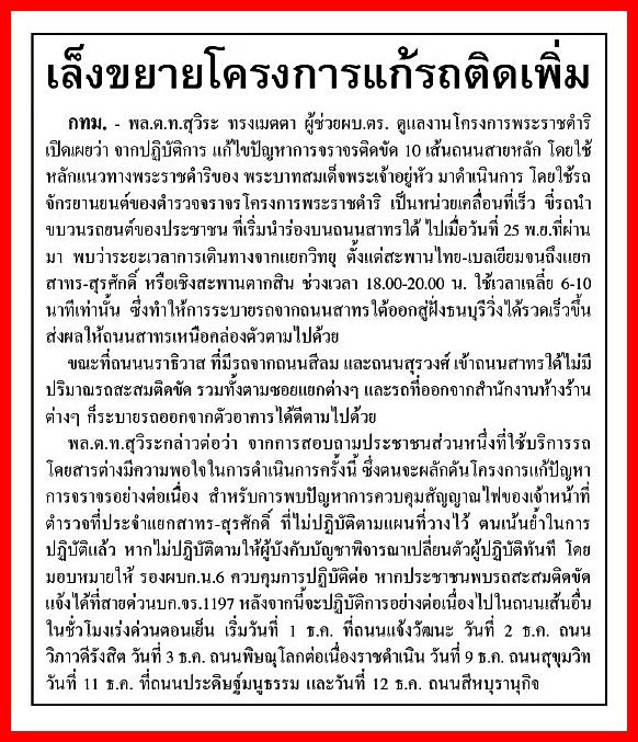 หากประชาชนพบรถสะสมติดขัด แจ้งได้ที่สายด่วนบก.จร.1197