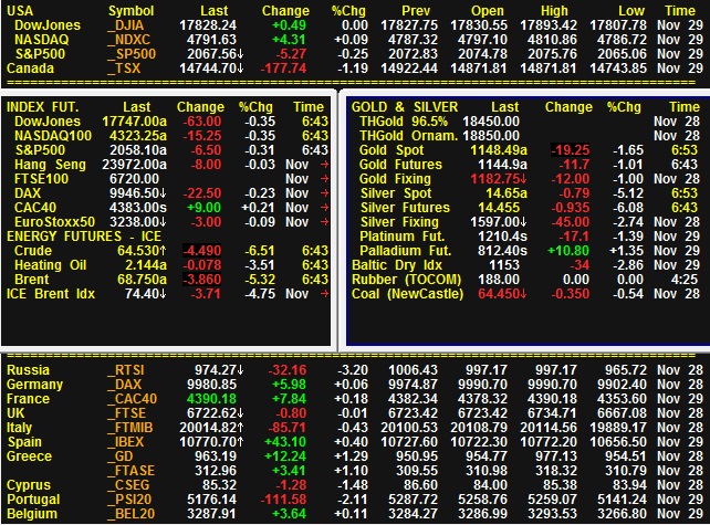 สำนักข่าวอินโฟเควสท์ (01 ธ.ค. 57)--ดัชนีและภาวะตลาดหุ้น น้ำมัน ทองคำ และตลาดเงินต่างประเทศ ประจำวันที่ 28 พ.ย.