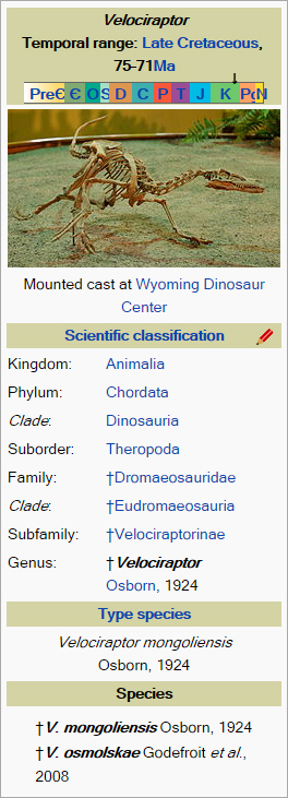 ตอนนี้ก็เป็นว่า สกุล --> Velociraptor มี 2 สปีชีส์ เป็นแรปเตอร์เล็ก กับแรปเตอร์ไม่เล็ก