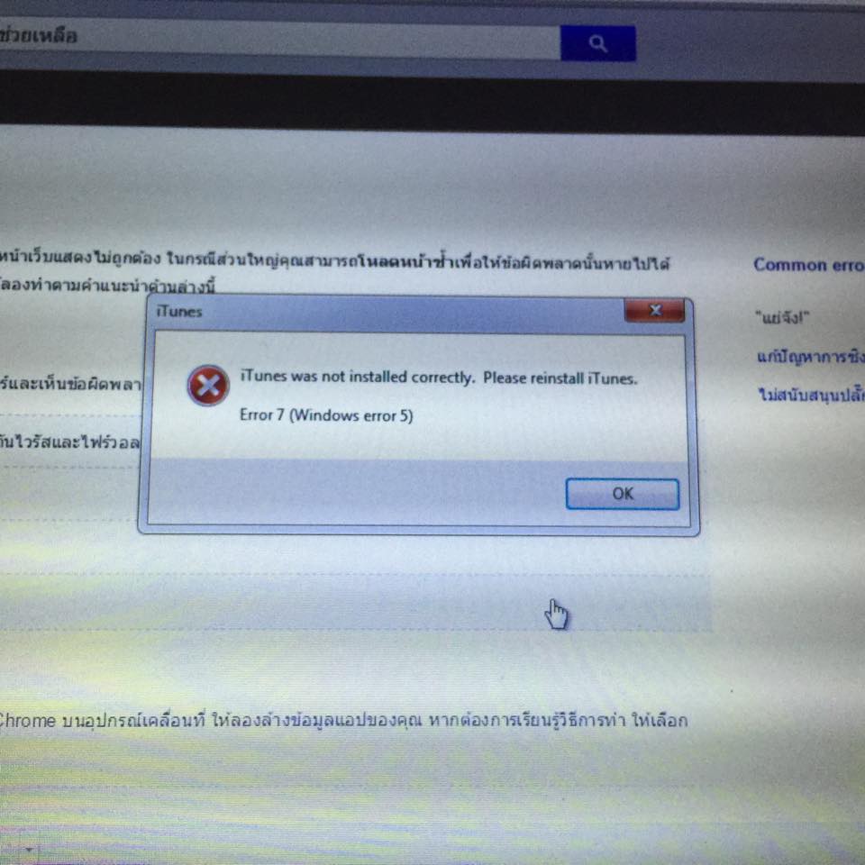 สวัสดีค่ะทุกคน คือมีปัญหาที่พยายามแก้มาหลายครั้งแล้วก็แก้ไม่ได้สักที เท้าความก่อนเลยคือก่อนหน้านี้เราใช้ iPhone3Gs ใช้งานดีงาม ปกติ ลงเพลงผ่าน iTunes เวอร์ชั่นเก่าที่ไม่เคยอัพก็ง่ายดาย ไม่เคยพบปัญหา พอปีนี้นางออก iPhone 6 เราก็คิดว่าถึงเวลาแล้วที่ต้องเปลี่ยนสักที ให้เครื่องเก่าได้พักกายพักใจ เลยถอย 6 Plus 64 GB มา เพราะว่าเราเป็นคนชอบฟังเพลงมากๆ ลงทีก็จะลงทั้งอัลบั้มของศิลปินที่ชอบ แล้วทีนี้ได้เครื่องมา เสียบiTunes ครั้งแรก นางแจ้งว่า เวอร์ชั่น iTunes ไม่ซัพพอต อะโอเค ไม่ซีเรียส อัพค่ะ พอกดอัพเสียเวลาไปสักพักกะว่าได้ใช้ล่ะ มันขึ้นว่า windows error 7 ค่ะ คืออะไรคะ งงค่ะ จบอักษรมาค่ะ แค่อ่านออกว่ามันคืออะไร แต่ไม่รู้จะแก้ยังไง ลองหาข้อมูลในเวปดูเค้าก็บอกว่า ให้อัพเดตซอฟแวร์คอม ก็อัพแล้ว ลบทุกโปรแกรมสนับสนุนตัวเก่าของแอปเปิ้ล แล้วลงใหม่ ก็ทำแล้ว ผลที่ได้ออกมาก็คือ เหมือนเดิม แบบนี้