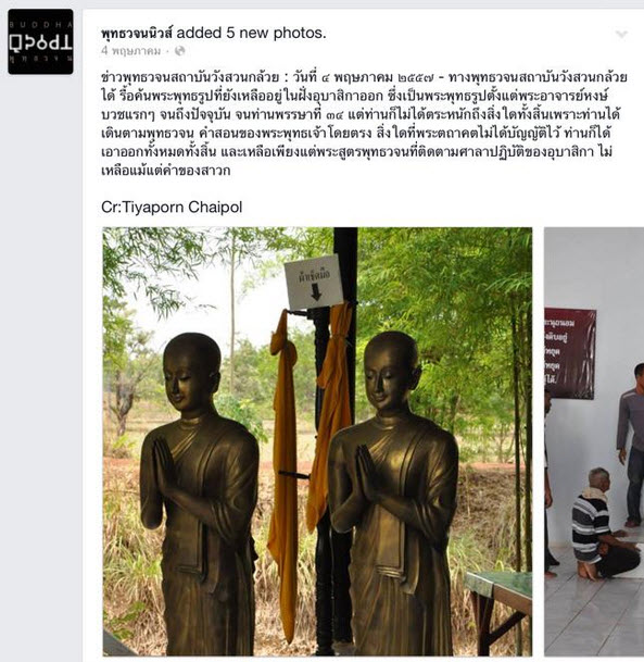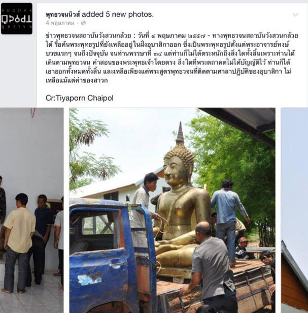 การเคลื่อนย้าย สมบัติของสงฆ์ มีพระพุทธรูป และพระสาวก ออกไป เพราะขัดกับทิฐิเจ้าสำนัก
