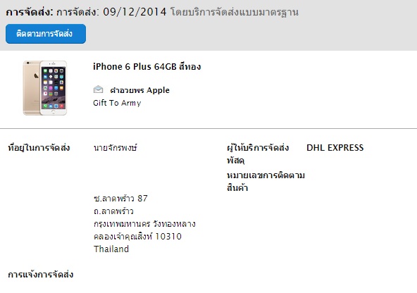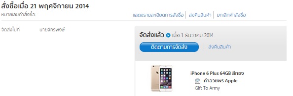 ใครที่สถานะ iPhone 6+ 64GB ช่วง 20-30/11 สถานะเปลี่ยนเป็นเตรียมจัดส่งล่าสุดเตรียมไปขึ้นเครื่องแล้ว