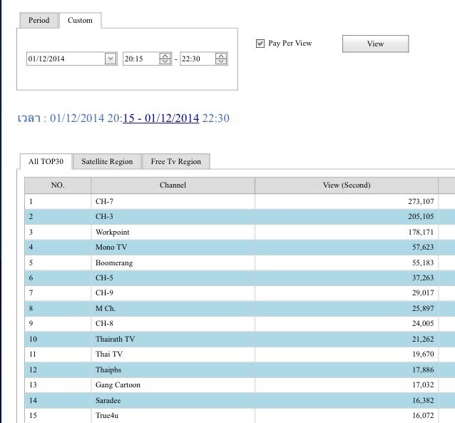 เรตติ้งละครหลังข่าวเฉพาะในระบบดิจิตอลทีวีเท่านั้น บางระจัน 2.78 (3HD) พรายพยากรณ์ 2.63 (CH7 HD) ฝันเฟื่อง 1.24 (ONE HD) *เรตติ้งละครก่อนข่าวเฉพาะในระบบดิจิตอลทีวีเท่านั้น ลูกไม้ลายรัก 3.72 (3HD) ห