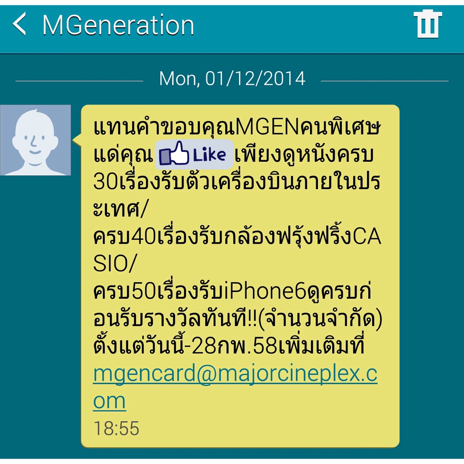 ได้ sms นี้จากเมเจอร์ค่ะ ขอบคุณนะคะสำหรับการเป็นลูกค้าคนพิเศษ แต่มันเกินไปไหมคะ???