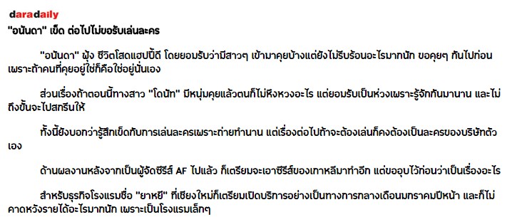 "อนันดา" เข็ด ต่อไปไม่ขอรับเล่นละคร