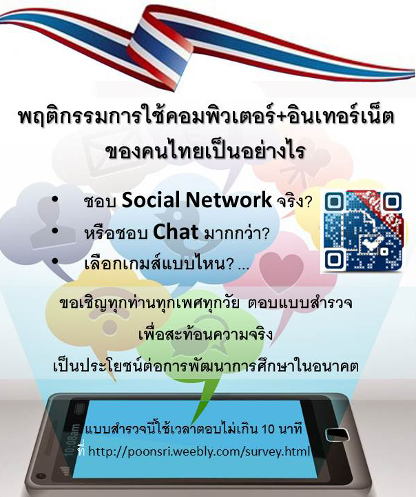 พฤติกรรมการใช้คอมพิวเตอร์+อินเทอร์เน็ตของคนไทยเป็นอย่างไร ขอเชิญตอบแบบสำรวจเพียง 5-10 นาทีเท่านั้น