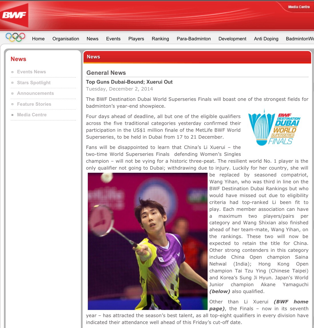 Li Xuerui ถอนตัว BWF Destination Dubai World Superseries Finals แล้ว